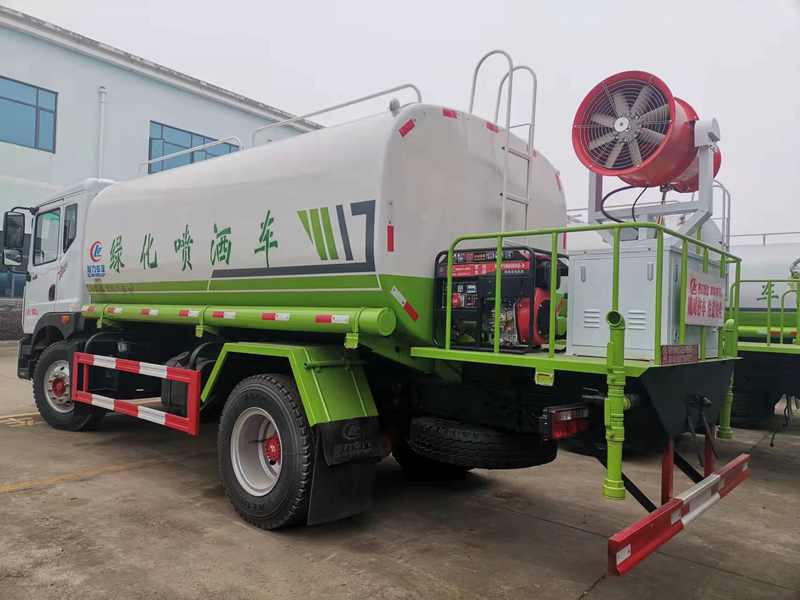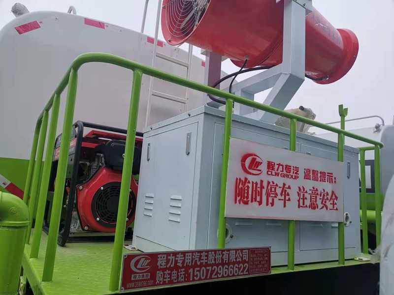 CLW5160GPSD5綠化噴灑車,東風多利卡D9抑塵車,配60型霧機組,水平靜風狀態下,實測射程65米,高端底盤配置,康明斯180馬力6缸發動機,原廠窨,方向助力,ABS,9.00鋼絲胎,帶行車記錄儀。