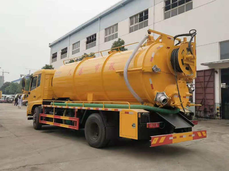 容積:15方(水罐和污罐容積可以自由分配),罐體厚度6MM,罐頂帶平臺,尾部圓孔玻璃視糞窗鏡,帶箭頭燈。