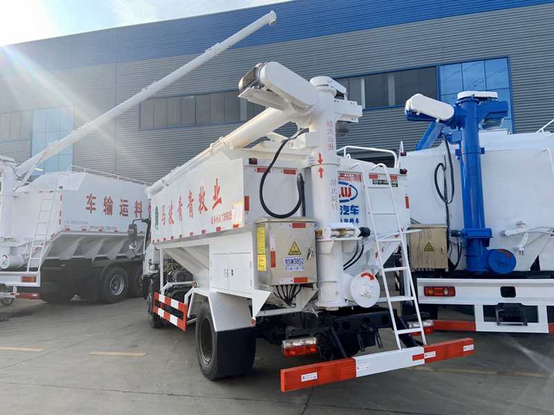 電動(dòng):上裝罐體材質(zhì)采用優(yōu)質(zhì)鋼板,整車3條絞龍(底部水平絞龍、尾部提升絞龍、頂部出料絞龍),由3個(gè)5.5KW電機(jī)帶動(dòng),頂部絞龍用液壓控制舉升,可左右旋轉(zhuǎn)180°。罐體分2倉(cāng),可根據(jù)用戶要做多個(gè)獨(dú)立分倉(cāng),可以獨(dú)立控制各分倉(cāng)卸料順序和速度,可選擇外接電源驅(qū)動(dòng)或液壓驅(qū)動(dòng)絞龍方式,卸料絞龍長(zhǎng)7.2米,舉升仰角60度,可左右旋轉(zhuǎn)180度。
