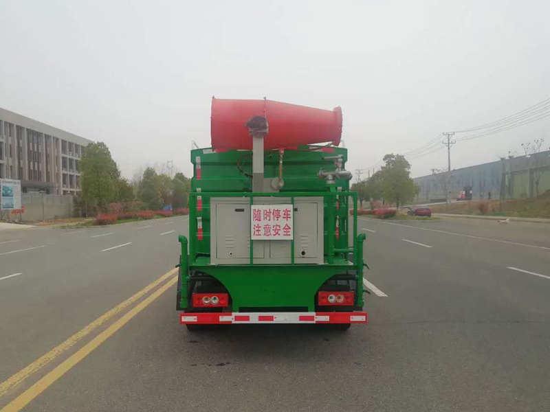 上裝選用5方罐體前置發動機組,7方罐體后大平臺放置30米風機和發電機組,前置電動水炮,前噴后灑側噴高炮。